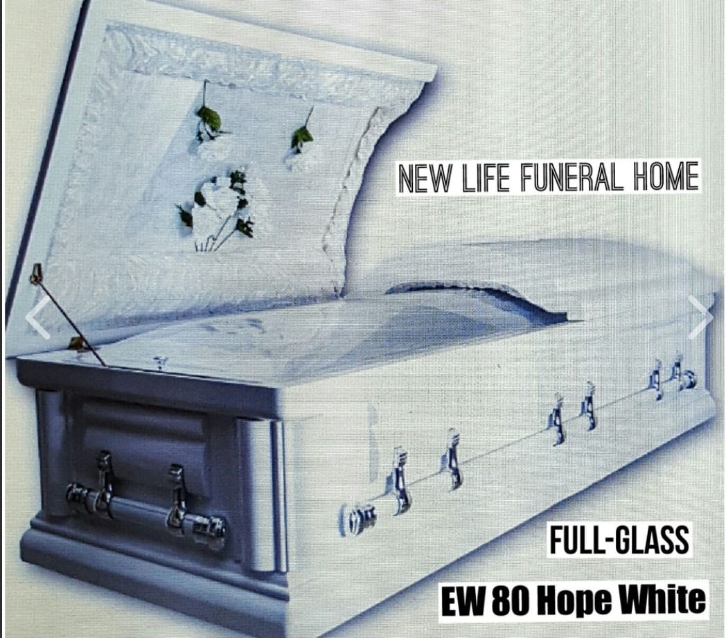 - HOPE Casket Model – Choice of White or Brown finish. Available in Full Glass or Half Glass viewing panel options.