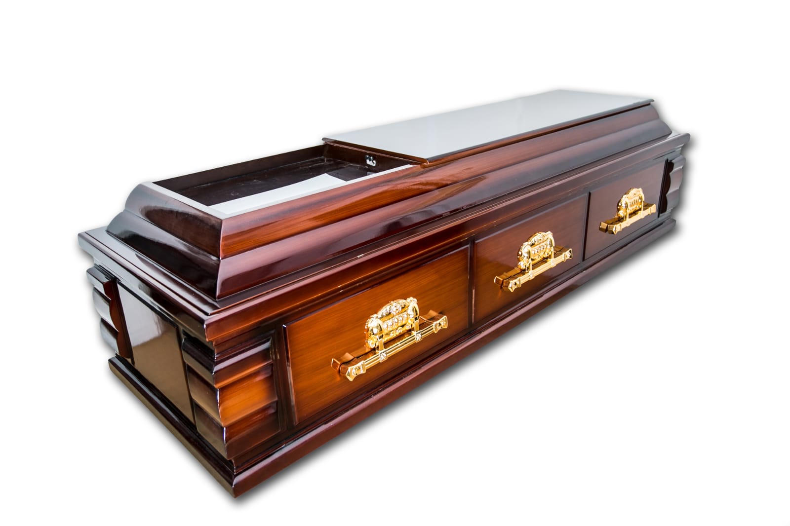 - Buddhist Casket Model – Polished finish, full viewing glass panel